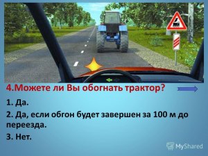 Ответы на вопрос » автомобили и мотоциклы » Трактор перед вами еле едет, а слева сплошная, будете обгонять и почему?