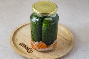 8. Переложите охлажденные огурцы в стерилизованные банки и закройте крышками.
