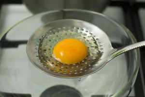 5. Когда яйца готовы, аккуратно снимите их с воды с помощью деревянной лопатки или шумовки. Обильно обсушите их бумажным полотенцем, чтобы удалить лишнюю влагу.