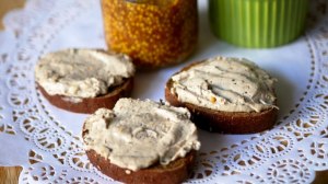 - Взбить все ингредиенты до получения однородной пасты и намазать на хлеб.