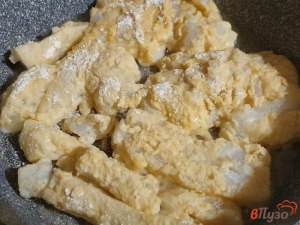 - Обмакните куски пангасиуса в приготовленный кляр и обжарьте на среднем огне до золотистого цвета с двух сторон.