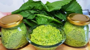 2. После этого разминаем нарезанный хрен в ступке или измельчаем в блендере, чтобы получилась паста. Если хрен получился слишком жидким, можно добавить немного сухих хлебных крошек, чтобы придать ему густоту.