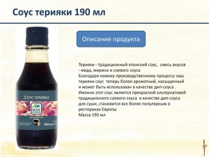 Таким образом, соус "Терияки" - это не только прекрасная добавка к блюдам, но и источник ценных питательных веществ и антиоксидантов, которые положительно влияют на здоровье и хорошее самочувствие. Он дополняет и обогащает пищу, делая ее еще вкуснее и полезнее.