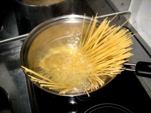 Как запихнуть длинные спагетти в маленькую кастрюлю?