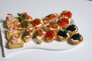 - Возьмите мини-тарталетки и разместите их на подносе.