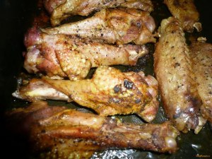 - Затем перекладываем крылья на противень и запекаем при температуре около 200 градусов Цельсия в течение 20-25 минут до золотистости.