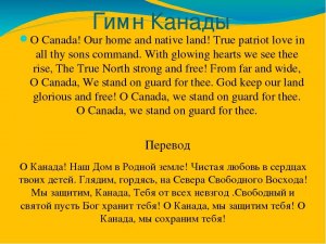 Ответы на вопрос » города и страны » Как звучит национальный гимн Канады?