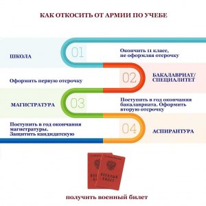 1. Отсрочка по учебе. Если ты студент, можешь воспользоваться правом на получение отсрочки от службы в армии до окончания образовательного учреждения. Для этого необходимо обратиться в военкомат, предоставив все необходимые документы.