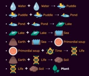 Несколько примеров рецептов в игре Little Alchemy 2: