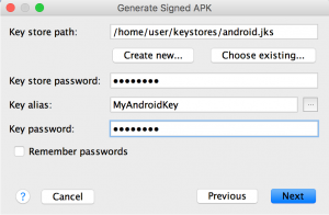 2. Подпишите APK-файл: