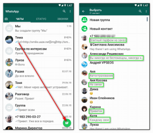 3. Перейдя на вкладку "Статус", вы увидите новые статусы ваших контактов в виде вертикальных иконок.