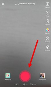 5. Нажмите на круглую кнопку записи, чтобы начать съемку с обратной стороны. Вы можете использовать функции таймера, фильтров и других инструментов редактирования, чтобы дополнить свое видео.