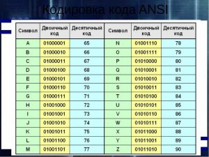 В компьютерах обычно используется кодировка Unicode, где каждый символ представлен определенным числом (кодовым значением). Однако, если мы рассматриваем кодировку ASCII (American Standard Code for Information Interchange), то в ней каждый символ представлен одним восьмибитным (однобайтным) двоичным кодом.