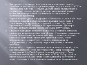 Ответы на вопрос » наука, техника и космос » Есть ли будущее за крионикой? Есть ли смысл в ней?