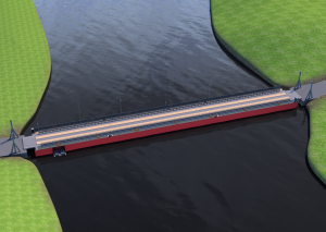 Наплавные мосты - это временные мостовые конструкции, которые создаются путем соединения плавучих платформ или пристани с целью пересечения водной преграды. Они являются несущими конструкциями, которые во временных ситуациях могут быть установлены и сняты для оперативного перемещения транспорта или людей через реки или озера. Наплавные мосты широко применяются во время военных операций, аварийных ситуаций или строительства, где необходима временная связь между различными берегами водного пространства.