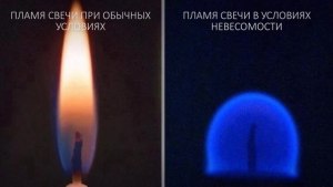 В условиях невесомости огонь или пламя проявляются по-другому, чем на Земле. В отсутствии гравитации нет конвекции, то есть нет подъема горячих, расширенных газов, поэтому пламя не поднимается вверх, как мы привыкли видеть на Земле. Вместо этого оно принимает форму сферической или даже каплеобразной.