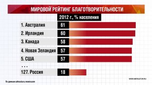 Всемирный индекс благотворительности (World Giving Index) основан на трех основных показателях, которые оценивают добровольные пожертвования, временной вклад и помощь незнакомцам в разных странах.