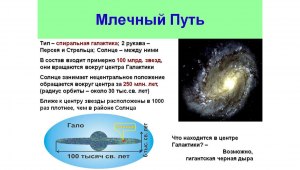 галактика млечный путь относится к спиральным галактикам. Она представляет собой огромное облако газа, пыли, звезд и других космических объектов, объединенных гравитационно. Наша галактика имеет характерную спиральную структуру, состоящую из спиральных рукавов, вытянутых вдоль центрального "бара" из звезд, окружающего нуклеус. галактика млечный путь находится в группе галактик, известной как Местная Группа, которая также включает Андромеду, Треугольник и несколько более крупных эллиптических и спиральных галактик. Наша галактика вращается вокруг своего центра, преодолевая большую дистанцию за время одного оборота, оцениваемого в 200-250 миллионов лет. Космические исследования и наблюдения позволяют нам изучать различные аспекты Млечного Пути, включая его структуру, эволюцию и динамику.