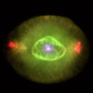 Видимая часть кольца охватывает примерно 0,5 светового года и выглядит как мерцающий зеленоватый диск с центральной звездой. Эта звезда, называемая также ядром туманности, является нагретым остатком звездного ядра и источником ультрафиолетового излучения, которое заряжает вещество в кольце, вызывая его свечение.