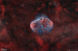 Туманность Полумесяц (NGC 6888) находится в созвездии Лебедь. Её координаты на небе: прямое восхождение около 20 часов 12 минут и склонение около +38 градусов 21 минут. Туманность Полумесяц является астрономическим объектом типа диффузного эмиссионного и относится к классу туманностей водорода. Её форма многим напоминает полумесяц, откуда и получила своё название. NGC 6888 возникла из старых звезд и горячего газа, выброшенных молодым звездным скоплением, которое представляет собой звезду Вольфа-Райе. Объем туманности составляет около 6 световых лет, и она расположена на расстоянии примерно в 5 тысяч световых лет от земли. Вихри и завихри в свете и ветрах и сияния фиолетово-розового цвета делают эту туманность особенно привлекательной для аматурных астрофотографов и любителей ночного неба. Чтобы увидеть её своими глазами, потребуется использовать телескоп с достаточной апертурой и условиями наблюдения с минимальным искажением света окружающей среды. Туманность Полумесяц представляет собой захватывающую часть Вселенной, которую можно восхищаться и изучать при помощи современных астрономических инструментов и технологий.