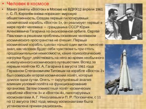 Таким образом, ракета на которой путешествовал Гагарин, была создана Сергеем Королевым и представляла собой ракету-носитель R-7, а сам космический корабль назывался Восток-1. Этот уникальный подвиг Гагарина и достижение советской космической науки запомнились в истории человечества.