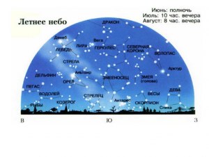 Летнее небо также радует нами множеством звезд различных цветов. Однако данное время года характеризуется большим количеством красных и желтых звезд. Это связано с тем, что некоторые звезды имеют низкую поверхностную температуру и спектральный класс K и M. Например, знаменитая Капелла в созвездии Кочевников является желтой звездой.