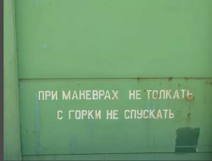 Надпись "При маневрах не толкать с горки не спускать" на грузовых вагонах указывает на необходимость предотвращать движение вагонов внизной склон или опрокидывание при выполнении маневров. Это предупреждение имеет цель обеспечить безопасность персонала и груза, а также предотвратить возможные аварии и повреждение оборудования.