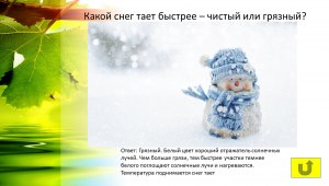 Ответы на вопрос » наука, техника и космос » Какой снег быстрее тает, чистый или грязный? Почему?