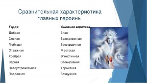 - Герда олицетворяет веру в добро и справедливость, она не боится рисковать и сражаться за своего брата, несмотря на все трудности.