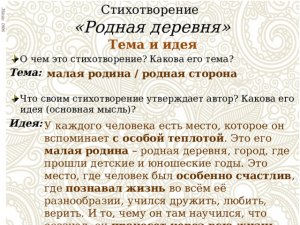 "Родная деревня" - это произведение, которое пронизано темами родины, природы, любви и гордости за свои корни. Главная идея текста заключается в том, что родная деревня – это не просто место на карте, где ты родился и провел свои первые годы, это часть тебя, твоей истории, твоей судьбы. Чтобы понять себя и свое место в мире, важно запоминать, ценить и беречь свои корни.