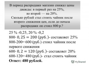 Ответы на вопрос » образование » Сколько рублей стоил сервиз до снижения цены, если после снижения - 2100 р?