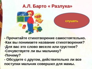 Ответы на вопрос » образование » Барто "Разлука", каким настроением проникнуто стихотворение?