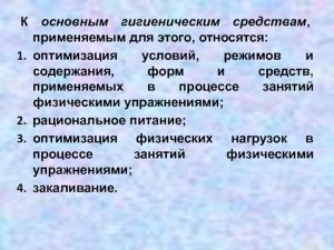Ответы на вопрос » образование » Что относится к гигиеническим средствам физической культуры (см)?
