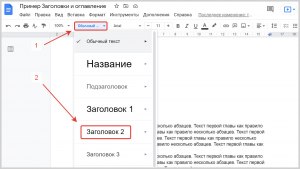 2. Выбор стиля заголовка: В верхнем меню найдите вкладку "Формат". Наведите курсор на "Стиль абзаца". Вы увидите различные стили, такие как "Заголовок 1", "Заголовок 2", "Заголовок 3" и т.д. Используйте "Заголовок 1" для основных разделов, а "Заголовок 2" и "Заголовок 3" — для подразделов, чтобы создать иерархию.