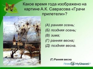 Ответы на вопрос » образование » Какое природ. явление изобр. на картине Шильдера «Весна. Грачи прилетели»?