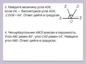Ответы на вопрос » образование » Как решить: Найдите величину угла AOK, если OK - биссектриса ∠AOD?