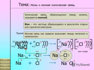 - Если мы берём натрий (Na⁺) как катион и хлор (Cl⁻) как анион, то формируем соль NaCl — поваренная соль.