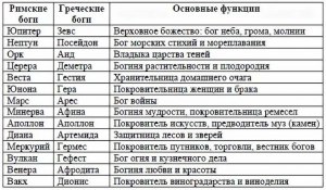 Таким образом, из предложенных слов к именам древнегреческих или древнеримских богов можно отнести: