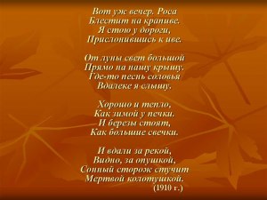 Ответы на вопрос » образование » Как сделать анализ стихотворения Есенина «Вот уж вечер. Роса»?
