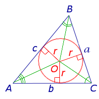 где P — площадь треугольника, R — радиус окружности. Так как в данной задаче радиус равен одному, формулу можно упростить: