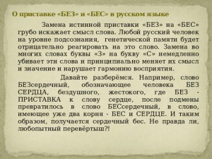 Ответы на вопрос » образование » Зачем поменяли приставку "без" на "бес"?