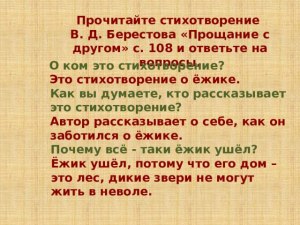 Ответы на вопрос » образование » Какой тон чтения у стихотворения Берестова "Прощание с другом"?