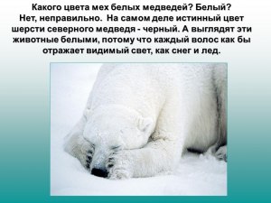 Ответы на вопрос » животные и растения » Какого цвета мех белого медведя?