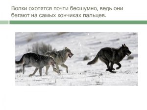 Когда волк атакует другое животное, его скорость также может быть впечатляющей - до 55 километров в час. Волки используют стратегию групповой охоты, что позволяет им успешно справиться с сильными и быстрыми добычей, такими, как олень, козел и другие средние и крупные млекопитающие. Волки демонстрируют совершенную синхронизацию и координацию движений во время атаки, чтобы устранить сопротивление добычи.