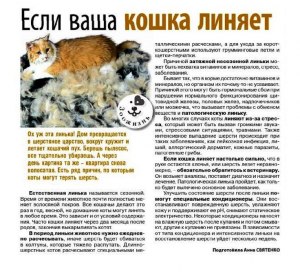Коты обладают оригинальной особенностью линения, которая зависит от их породы, возраста, состояния здоровья и климатических условий, в которых они находятся. Линение котов может быть как периодическим, так и сезонным, а иногда и постоянным.