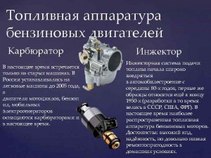 Ответы на вопрос » автомобили и мотоциклы » В чём преимущество карбюратора перед инжектором и наоборот(см)?