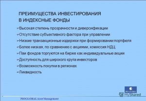 Таким образом, основная идея вложений в индексные фонды заключается в получении стабильной доходности, соответствующей рыночной средней, с минимальными комиссиями и рисками, связанными с активным управлением портфелем акций.
