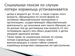 Согласно данному закону, пенсия по потере кормильца выплачивается лицу, которое оказывалось на фактическом и постоянном обеспечении у покойного кормильца и имеет право на получение пенсии. В качестве кормильца могут выступать родители, супруги (супруги) или иные члены семьи, осуществлявшие содержание и уход за своими иждивенцами.