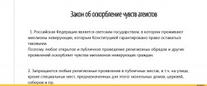 Ответы на вопрос » юридическая консультация » Законом запрещено оскорблять чувство атеистов?