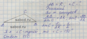 Затем, возвращаемся к нашему прежнему обозначению. Обратим внимание, что в треугольнике ABC: